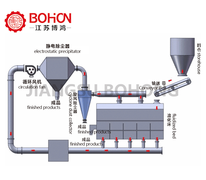 In addition, the horizontal fluidized bed boiling dryer equipment manufactured by Jiangsu Bohong Drying production can also be equipped with pneumatic feeding devices to further improve production efficiency and automation level.